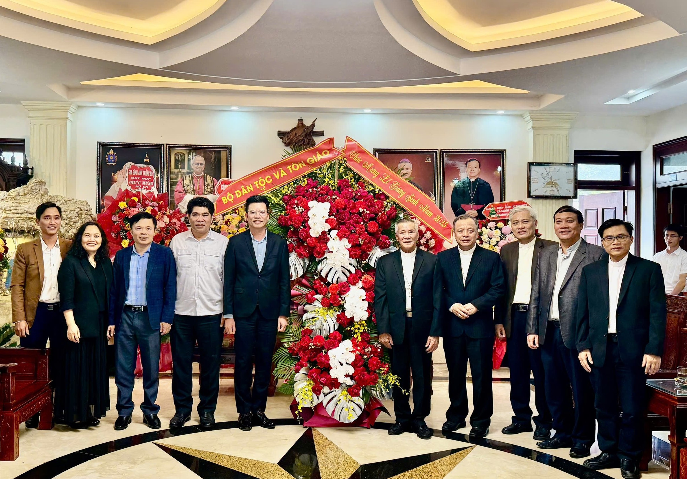 | Đọc bài viết |Nhân dịp lễ Giáng sinh năm 2025, ngày 21-22/12, Phó Trưởng ban Ban Tôn giáo Chính phủ Nguyễn Tiến Trọng đã tới thăm, chúc mừng Tòa Giám mục Giáo phận Thanh Hóa, Tòa Giám mục Giáo phận Vinh và Tòa Giám mục Giáo phận Hà Tĩnh. Tháp tùng đoàn có lãnh đạo phòng Công giáo, Ban Tôn giáo Chính phủ, lãnh đạo Sở Dân tộc và Tôn giáo tỉnh Hà Tĩnh và Nghệ An.