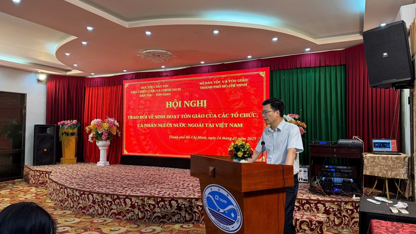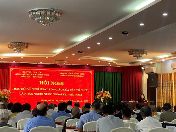 Ngày đăng: 17/11/2025Ngày 14/11/2025, tại thành phố Hồ Chí Minh, Viện Chiến lược và Chính sách Dân tộc – Tôn giáo, Học viện Dân tộc, Bộ Dân tộc và Tôn giáo phối hợp với Sở Dân tộc và Tôn giáo Thành phố tổ chức Hội nghị Hội nghị trao đổi về sinh hoạt tôn giáo của các tổ chức, cá nhân người nước ngoài tại Việt Nam.