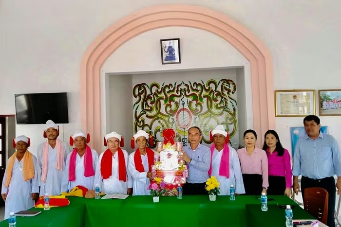 Đoàn đến thăm và chúc Tết Katê tập thể gia đình Hoàng tộc Chăm tại xã Hồng Thái