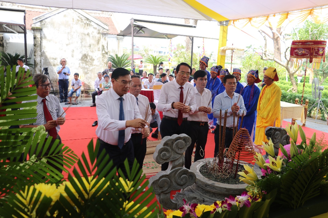 Trong không khí trang nghiêm, thành kính, các đại biểu đã dâng hoa, dâng hương tại phần mộ, linh điện Đại thi hào, tỏ lòng thành kính bày tỏ lòng biết ơn sâu sắc, tưởng nhớ, tri ân những đóng góp to lớn của Đại thi hào Nguyễn Du đối với nền văn học nước nhà, với văn hóa thế giới.