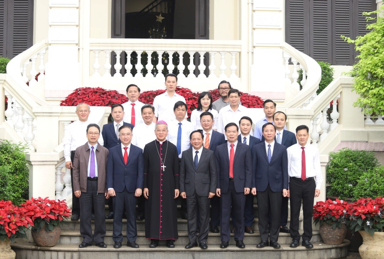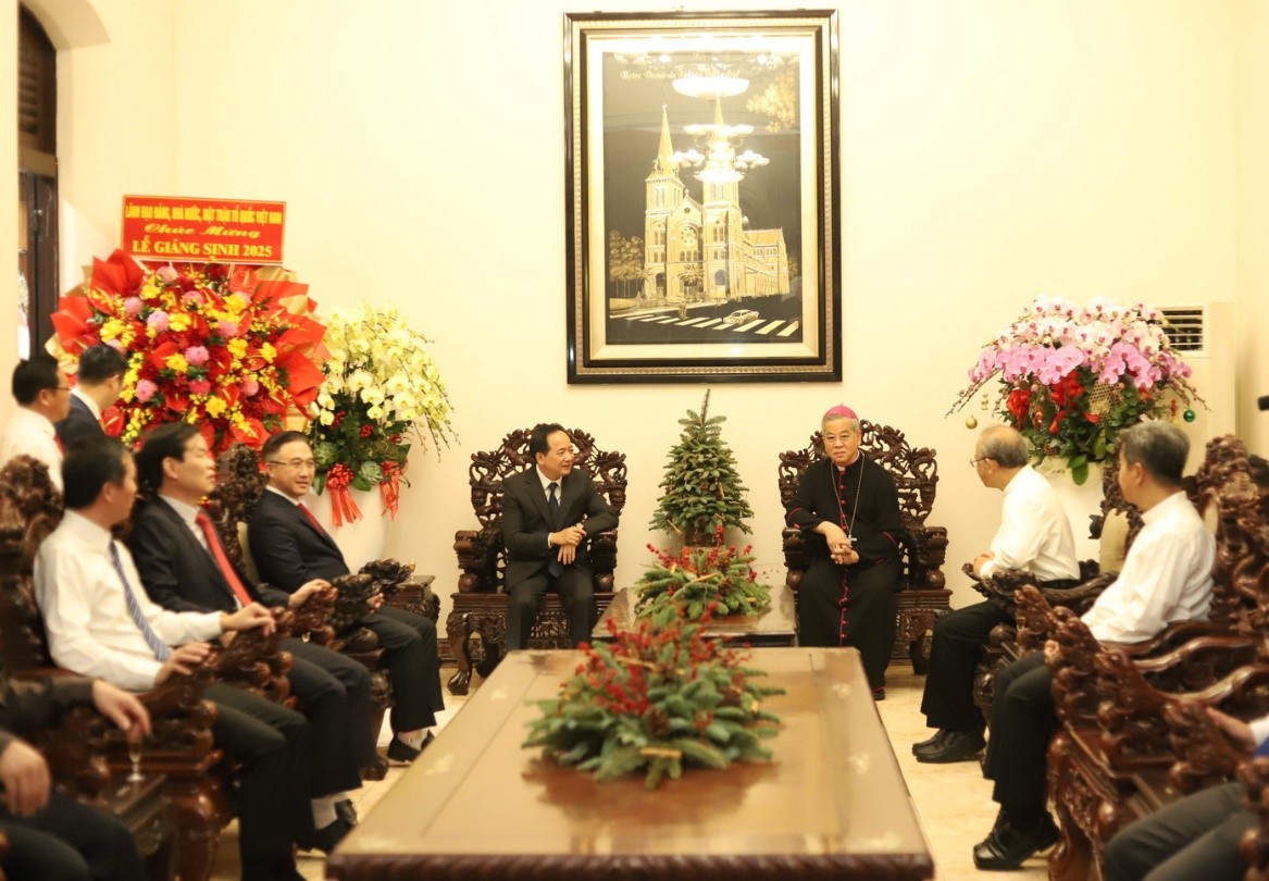 Tại Tòa Tổng Giám mục Tổng Giáo phận Thành phố Hồ Chí Minh, Trưởng Ban Tuyên giáo và Dân vận Trung ương Trịnh Văn Quyết gửi lời chúc mùa Giáng sinh an lành, hạnh phúc đến với Tổng Giám mục Nguyễn Năng, Chủ tịch Hội đồng Giám mục Việt Nam, Tổng Giám mục Tổng Giáo phận Thành phố Hồ Chí Minh, các linh mục, tu sỹ và đồng bào Công giáo; cảm ơn sự đóng góp tích cực của đồng bào Công giáo đã đồng hành, ủng hộ các đường lối, chủ trương, chính sách của Đảng, Nhà nước trong phát triển kinh tế-xã hội, thực hiện công tác an sinh, hỗ trợ đồng bào bị hậu quả thiên tai, bão lũ trong năm 2025.