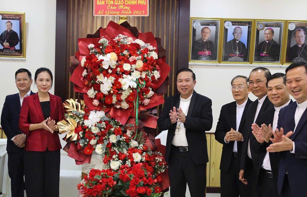 | Đọc bài viết |Nhân dịp lễ Giáng sinh năm 2025, ngày 18-19/12, Phó Trưởng ban Ban Tôn giáo Chính phủ Trần Thị Minh Nga tháp tùng đoàn lãnh đạo Trung ương do Ủy viên Trung ương Đảng, Phó Chủ tịch Quốc hội, Thượng tướng Trần Quang Phương làm trưởng đoàn tới thăm, chúc mừng Tòa Giám mục Giáo phận Long Xuyên, tỉnh An Giang và Tòa Giám mục Giáo phận Buôn Mê Thuột, tỉnh Đắk Lắk.