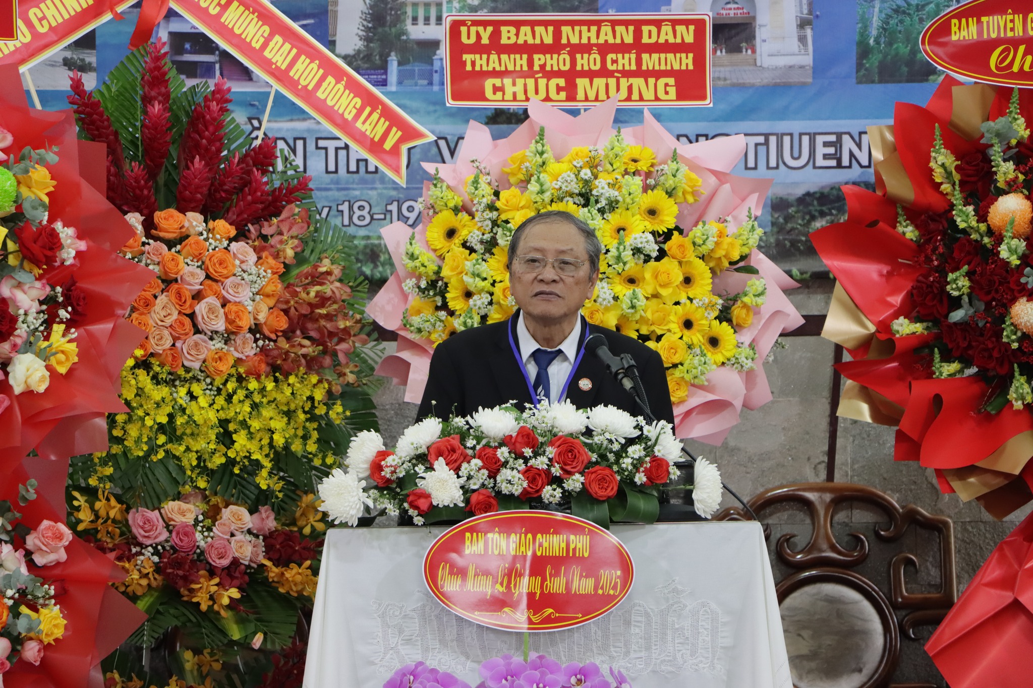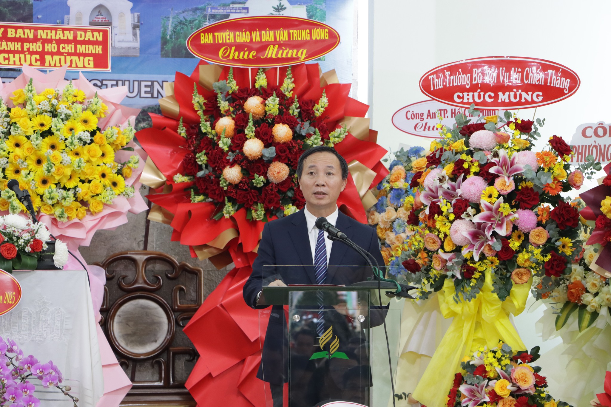 Trưởng ban Vũ Hoài Bắc tặng hoa chúc mừng Giáo hội Cơ đốc Phục Lâm Việt Nam