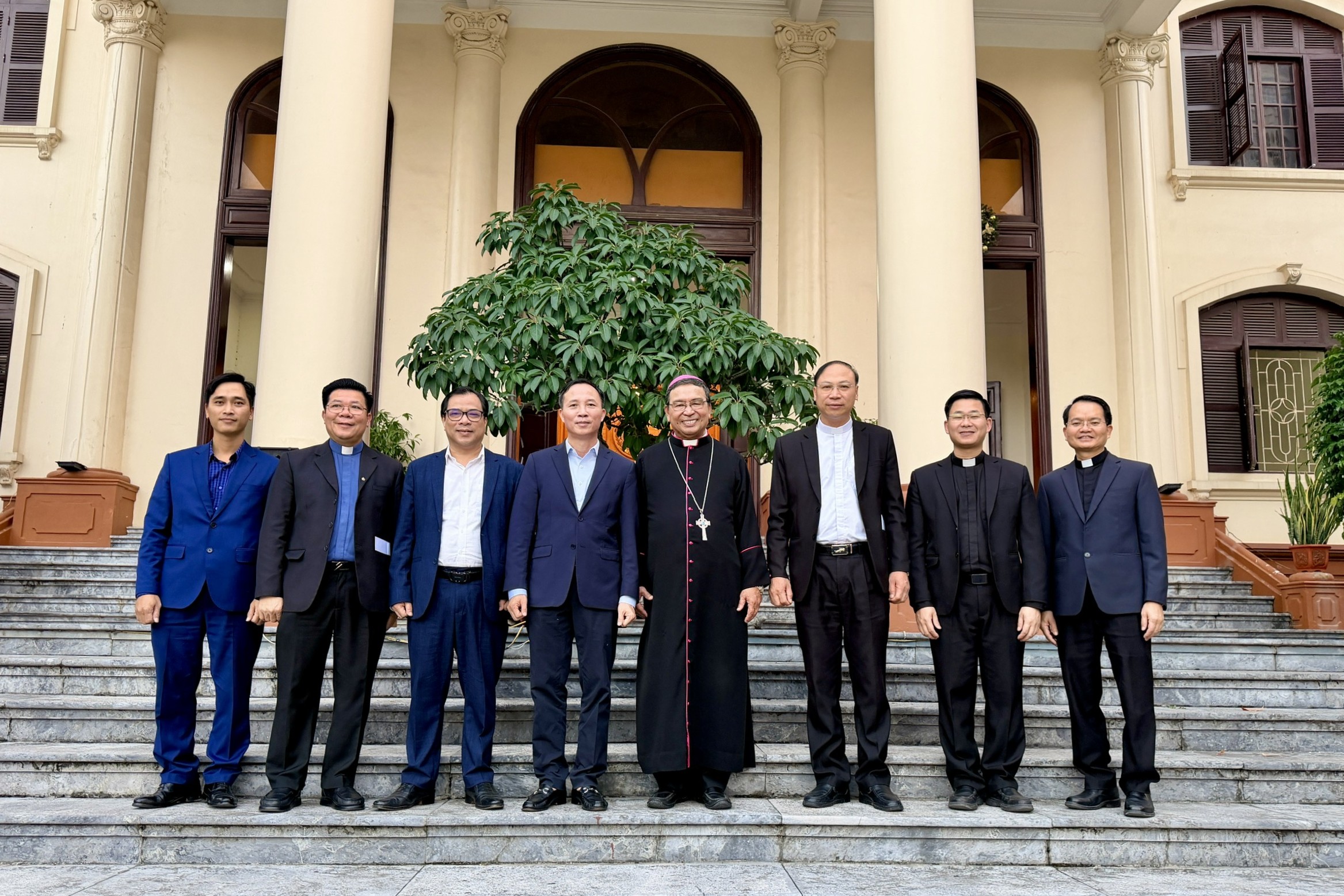 Đón tiếp đoàn có Giám mục Vinh Sơn Nguyễn Văn Bản, Giám mục Giáo phận Hải Phòng và Linh mục Nguyễn Văn Nguyên, Tổng Đại diện Giáo phận Hải Phòng.