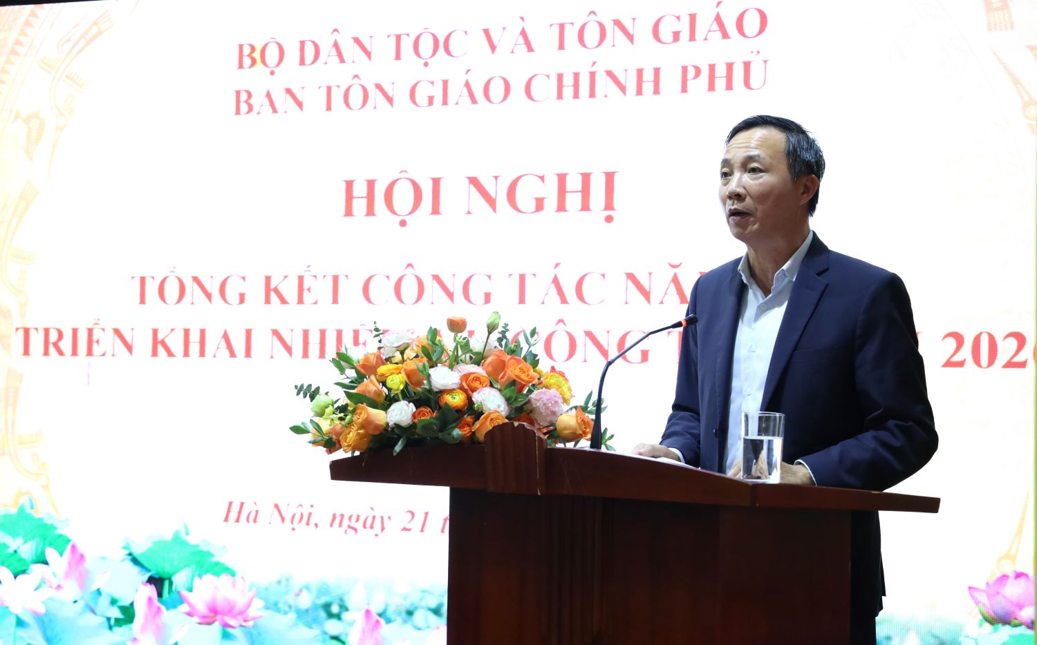 Phát biểu chỉ đạo tại Hội nghị, Nguyễn Hải Trung, Thứ trưởng Bộ Dân tộc và Tôn giáo ghi nhận và đánh giá cao những kết quả Ban Tôn giáo Chính phủ đã đạt được trong năm 2025, nhất là trong bối cảnh vừa thực hiện sắp xếp tổ chức bộ máy, vừa bảo đảm yêu cầu quản lý nhà nước về tín ngưỡng, tôn giáo trong tình hình mới. Thứ trưởng nhấn mạnh, những kết quả đó đã góp phần quan trọng giữ vững ổn định tình hình tôn giáo, củng cố niềm tin của chức sắc, tín đồ các tôn giáo vào sự lãnh đạo của Đảng, sự quản lý của Nhà nước.
