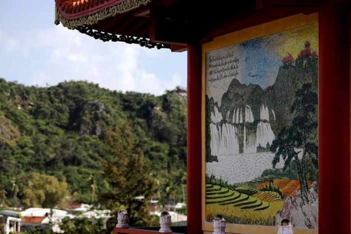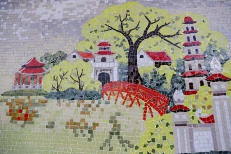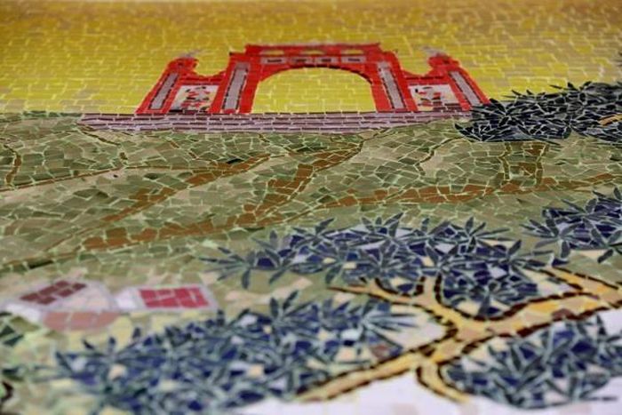 Hình ảnh về các thắng cảnh, di tích đặc trưng của các địa phương, vùng miền được tái hiện trên bộ tranh sứ độc bản tại chùa Quán Thế Âm - Ngũ Hành Sơn.