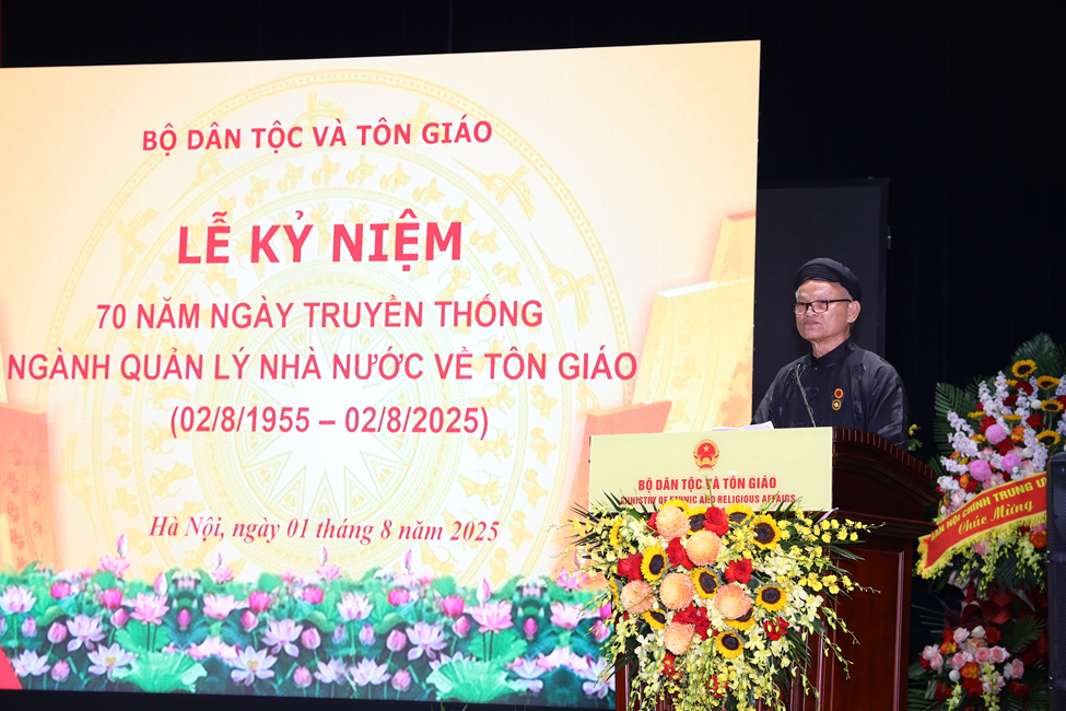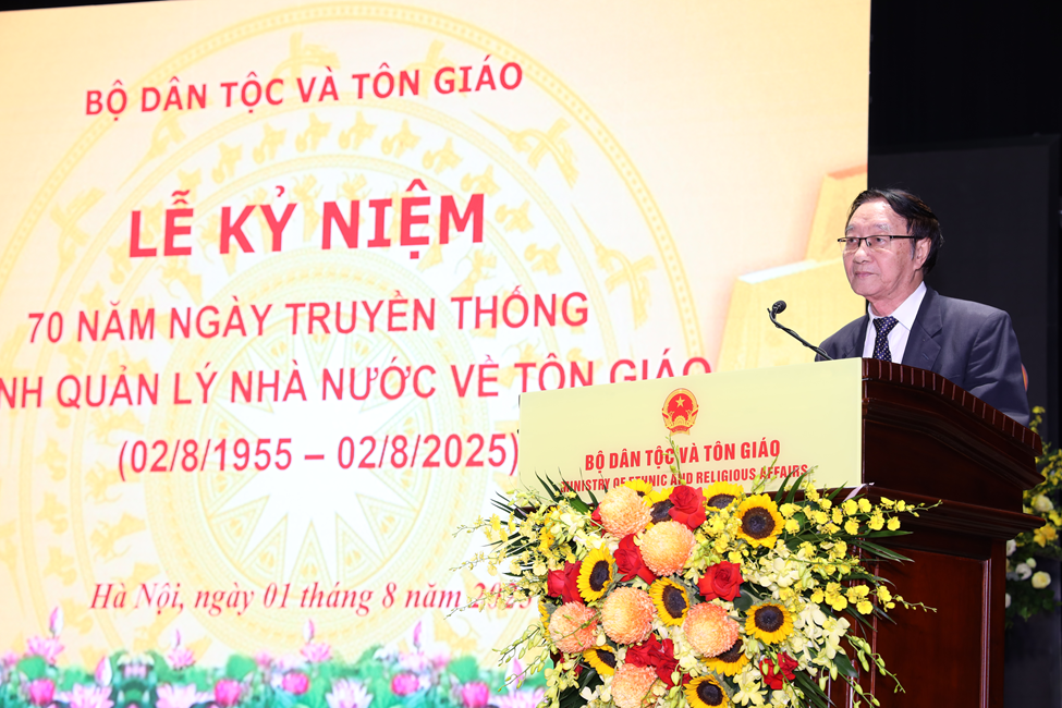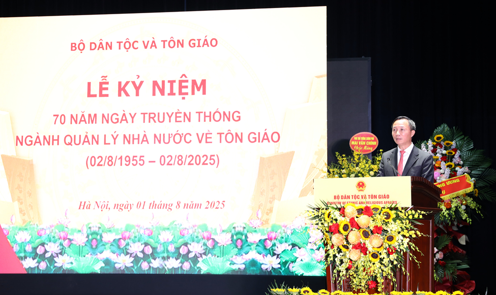 | Đọc bài viết |Ngày 01/8, tại trụ sở Bộ Dân tộc và Tôn giáo trang trọng diễn ra Lễ kỷ niệm 70 năm Ngày thành lập Ban Tôn giáo Chính phủ và Ngày truyền thống ngành quản lý nhà nước về tôn giáo (02/8/1955 - 02/8/2025).