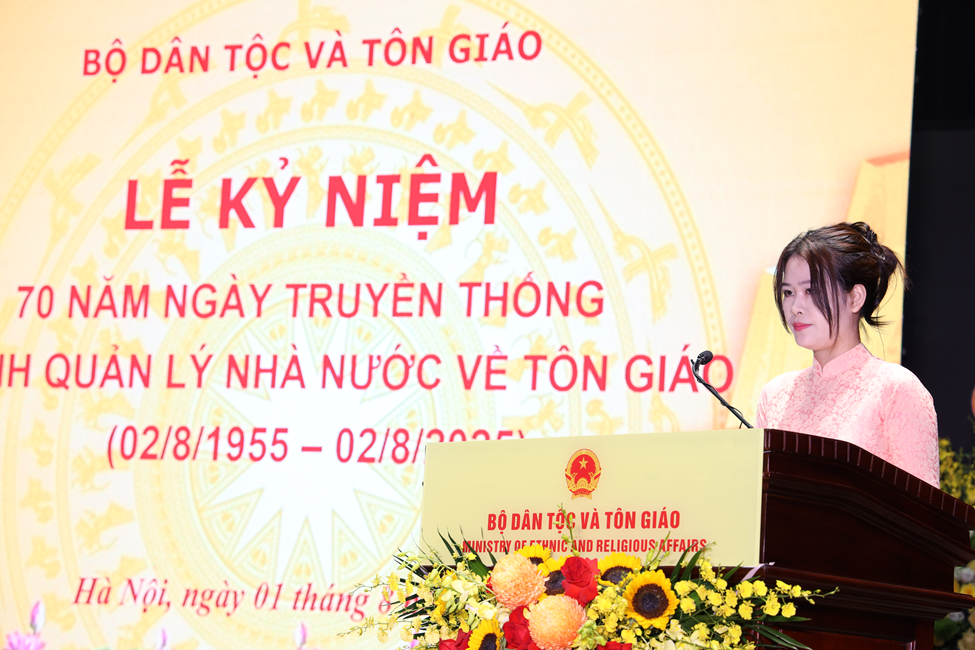 Chị Đào Khánh Linh, Bí thư Đoàn Thanh niên Ban Tôn giáo Chính phủ khẳng định sự kế thừa và tiếp nối truyền thống 70 năm vẻ vang của Ban Tôn giáo Chính phủ