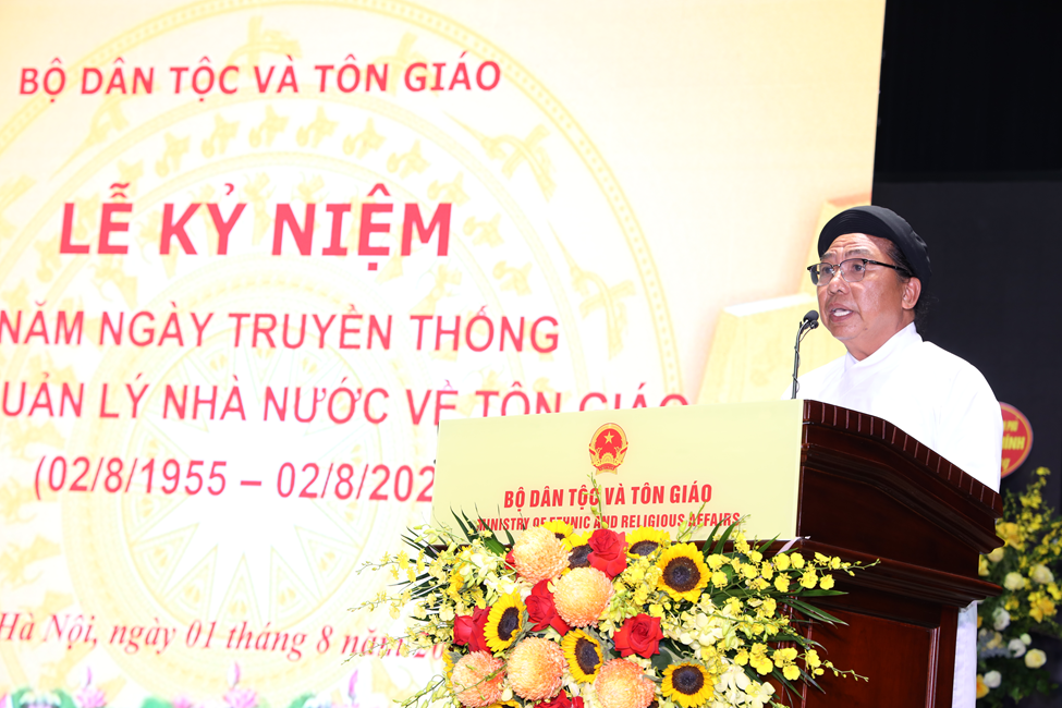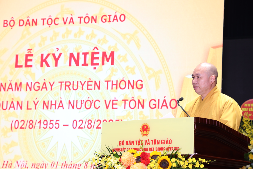 Thượng tọa Thích Đức Thiện, Phó Chủ tịch kiêm Tổng Thư ký Hội đồng Trị sự Giáo hội Phật giáo Việt Nam phát biểu chúc mừng Ban Tôn giáo Chính phủ