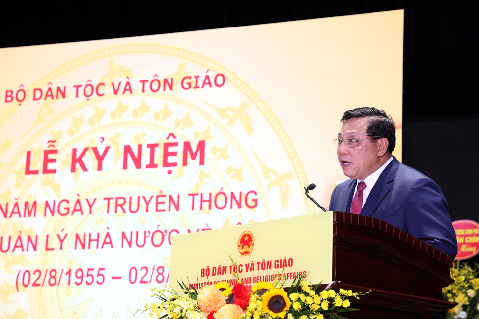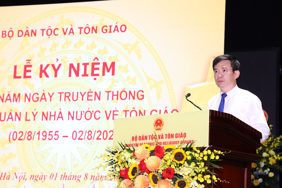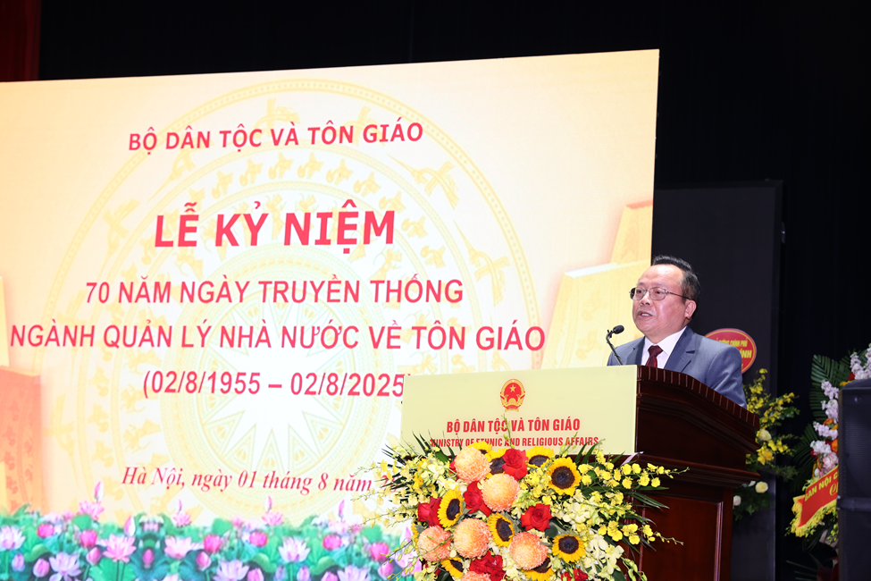 Thứ trưởng Bộ Dân tộc và Tôn giáo Nguyễn Hải Trung đọc diễn văn Lễ kỷ niệm 70 năm Ngày truyền thống ngành quản lý nhà nước về tôn giáo (02/8/1955 - 02/8/2025)