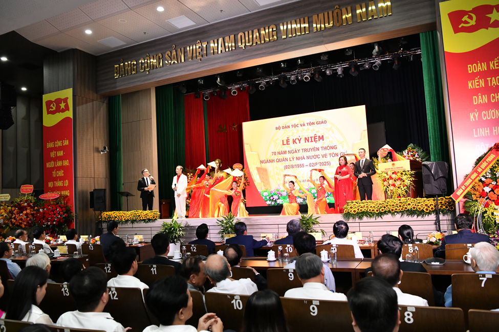 Toàn cảnh Lễ kỷ niệm 70 năm Ngày truyền thống ngành quản lý nhà nước về tôn giáo (02/8/1955 - 02/8/2025)