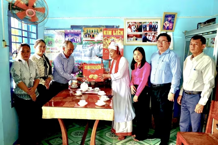 Đoàn thăm và chúc Tết Katê Sư cả Huỳnh Cứng, Phó Chủ tịch Hội đồng chức sắc Bàlamôn giáo tỉnh tại xã Bắc Bình