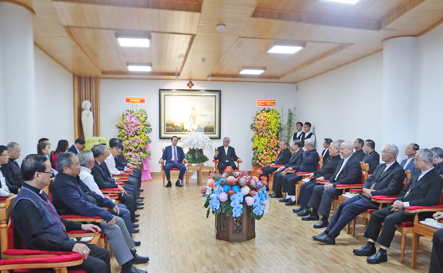 Thay mặt Hội đồng Giám mục Việt Nam, Tổng Giám mục Giuse Nguyễn Năng cảm ơn sự quan tâm của Bộ trưởng Bộ Dân tộc và Tôn giáo và lãnh đạo UBND tỉnh Lâm Đồng đã dành thời gian đến chúc mừng Đại Hội Hội đồng Giám mục Việt Nam, đồng thời gửi lời chúc sức khoẻ, bình an đến Bộ trưởng và các thành viên trong đoàn.